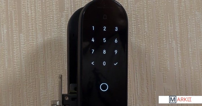Устройство может быть установлено как на деревянные, так и на стальные двери с толщиной полотна от 40 до 80 мм. Замок поддерживает работу с Apple Home.При установке замка существует возможность изменить сторону расположения ручки.Замок поддерживает следующие способы открытия: разблокировка двери с помощью отпечатка пальца, пароля, карты NFC, временного пароля, HomeKit, аварийного ключа, через приложение Aqara home.Во внутреннюю панель замка встроен динамик, который проигрывает мелодию звонка при нажатии кнопки на внешней панели. Дополнительно, при нажатии кнопки, можно настроить отправку уведомления владельцу.В замке предусмотрена установка основного и запасного комплекта элементов питания. Когда первый комплект разрядится — устройство отправит уведомление о необходимости замены элементов питания. Но даже в случае полной разрядки всех батарей есть возможность подключения внешнего источника питания к разъёму «Type C» на лицевой панели.Шесть способов разблокировкиНадёжный механизм замкаДо 18 месяцев работы на одном комплекте батарей*Технология HomeKit обеспечивает продвинутую безопасностьОбязательно сохраните пароль администратора!Это первый пароль, который вы введете после установки замка. Если пароль будет утерян, то замком нельзя будет пользоваться. Это сделано из соображений безопасности. Мы не сможем вам помочь его восстановить.* До 18 месяцев работы на одном комплекте батарей по данным лаборатории Lumi в условиях использования 8 оригинальных батареек при имитации открытия двери 10 раз в день (режим без двойной проверки) при комнатной температуре 25 °С. В условиях низких температур время автономной работы сократится.