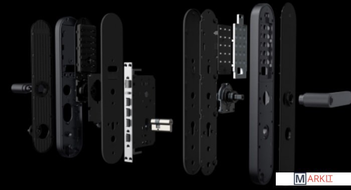Комплектация передняя панель, задняя панель, корпус замка, цилиндровый механизм, аварийный ключ 2 шт., ответная планка замка, короб ответной планки, комплект аксессуаров, шаблон для монтажа и руководство пользователя