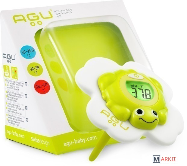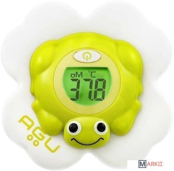 Термометр для ванны Froggy AGU - измеряет температуру воды каждые 30 секунд и сигнализирует при помощи цветовой и цифровой индикации, не слишком ли вода горячая и не охладилась ли чересчур за время купания.Забавный спутник купаний в виде лягушки совмещает веселую игрушку и обучение цветам. При доставании из воды прибор автоматически выключается. Прибор абсолютно безопасен, в отличие от популярных, но устаревших ртутных термометров.- мигающая световая индикация зеленым цветом при оптимальной, комфортной температуре 36–38 °С;- мигающая световая индикация красным цветом при температуре, превышающей комфортный диапазон (>38 °С);- мигающая световая индикация синим цветом при температуре ниже комфортного диапазона (менее 36°С).