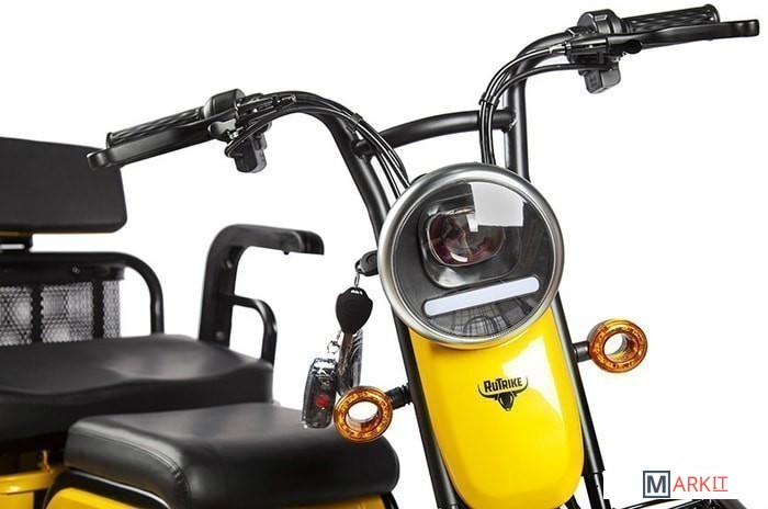 Обратите внимание! Трицикл по умолчанию поставляется без аккумуляторных батарей! Универсальный контроллер 48V/60V;Трансформирующаяся конструкция (заднее сиденье опрокидывается, образуя удобную мягкую спинку с подголовником);Большая металлическая корзина сзади;Крепкая корзина на руле;Светодиодная оптика и поворотники;Переключатель динамики старта (резкий/плавный);Приборная панель с LCD-дисплеем;Сигнализация (два брелока в комплекте).