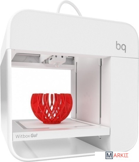 Witbox Go! – 3D-принтер от испанской компании BQ. Главными особенностями нового принтера стали эксклюзивный, стильный дизайн, внушительная область печати для его компактных размеров, ОС Android на борту и встроенный процессор, а также система контроля пластика.