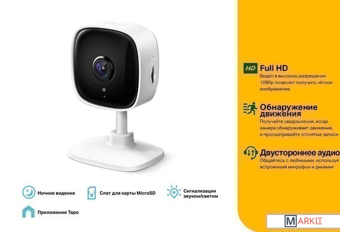 Домашняя Wi-Fi камера с высоким разрешением 1080p со встроенной ИК-подсветкой до 9 метров.