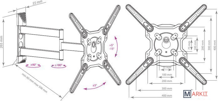 Расстояние от стены (потолка) 60 — 506 мм