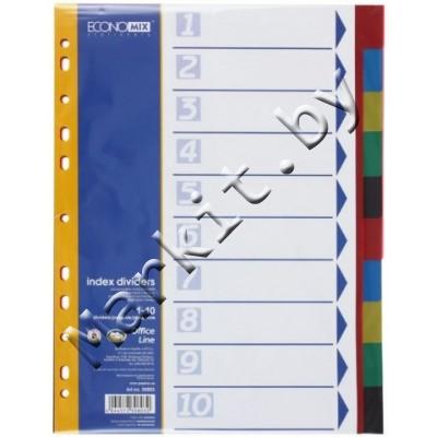 Разделители для регистраторов пластиковые Economix, 10 л., индексы по цветам (без нумерации) Код: 32583