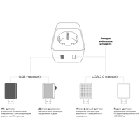 Умная розетка SAVER предназначена для удаленного управления электроприборами, измерения напряжения электросети, защиты подключенной бытовой техники, расширения зоны Wi-Fi. Мониторинг и управление осуществляются c помощью приложения для мобильного устройства на базе iOS и Android.С помощью дополнительных датчиков SAVER позволяет управлять различными электроприборами, осуществлять мониторинг температуры, влажности и уровня освещённости в помещении, а также получать данные от датчика двери и датчика движения. Дополнительные датчики с чёрным USB разъёмом должны подключаться в чёрный USB порт. Датчики с белым USB разъёмом – в белый USB порт.