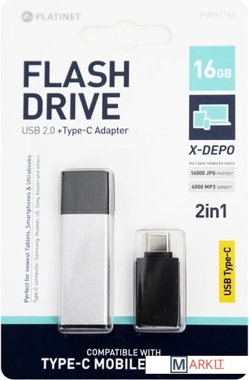 Markit » Флешки USB » USB Flash Platinet X-Depo + Type-C Adapter 32GB (серебристый)