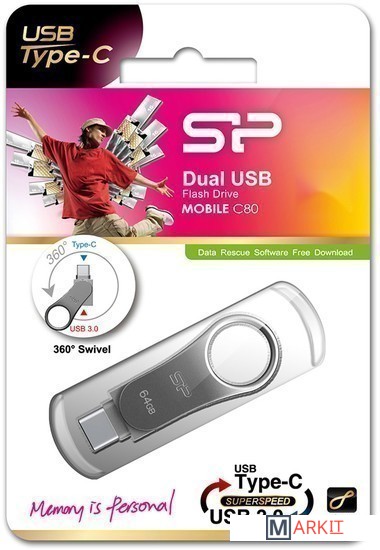 Mobile C80 - это накопитель двойного назначения, позволяющий подключение как к устройствам со стандартным портом USB (Type-A), так и USB Type-C. Дополнительным преимуществом интерфейса USB Type-C является симметричность коннектора, позволяя быстрое и удобное подключение к вашим устройствам, независимо от направления подключения.