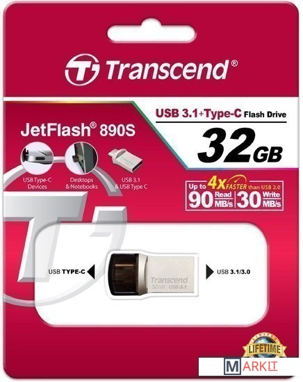 Markit » Флешки USB » USB Flash Transcend JetFlash 890S USB3.1 + Type-C 32GB [TS32GJF890S]