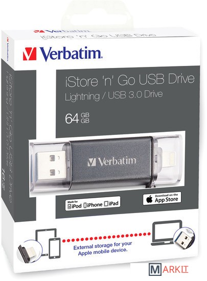 Markit » Флешки USB » USB Flash Verbatim iStore 'n' Go Lightning 64GB [49301]